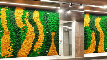 Фитостены из стабилизированного мха, живых и искусственных растений.