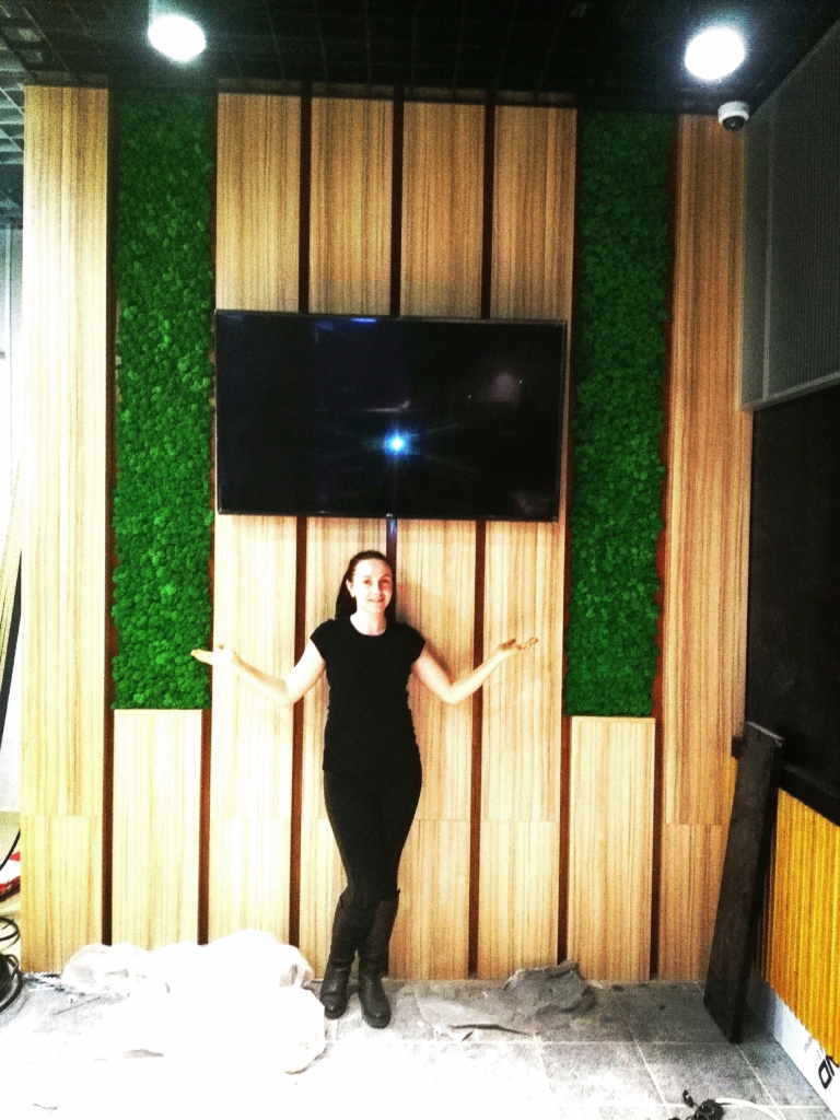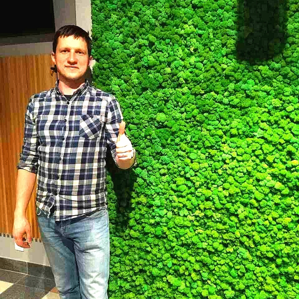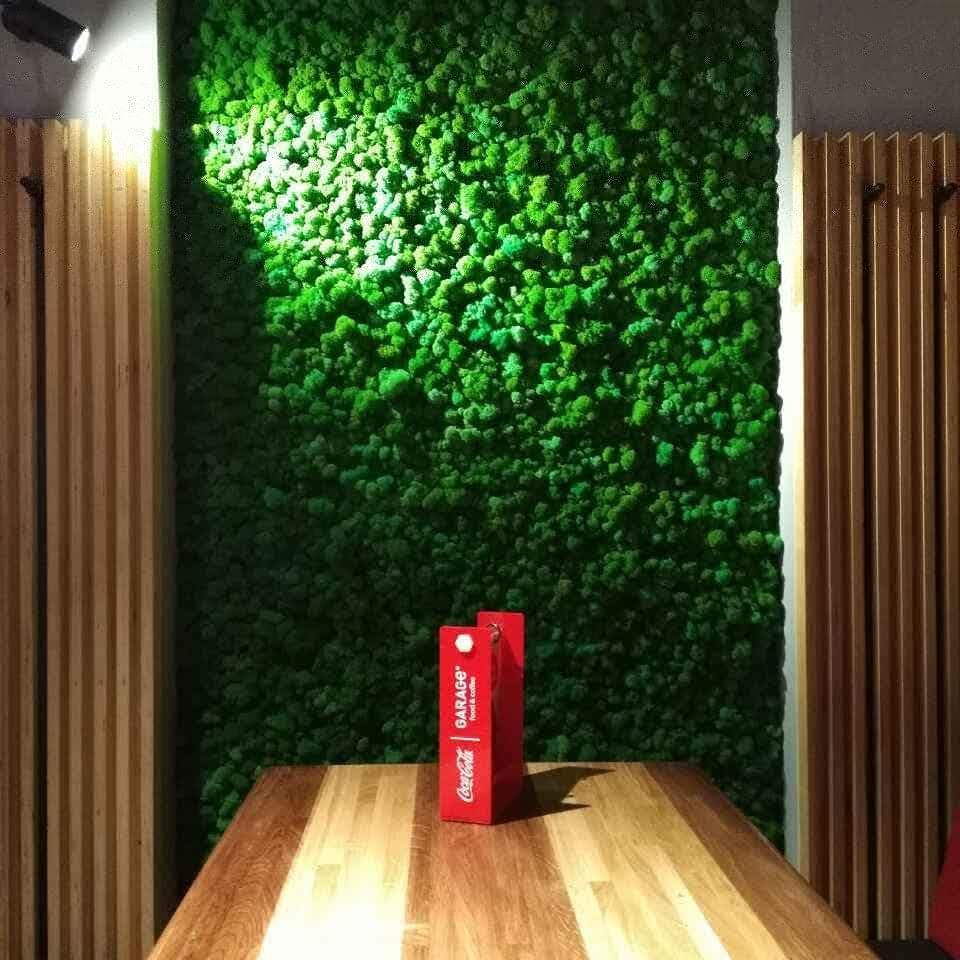 Для данного кафе мы изготовили 4 панно из мха ягеля, все панно стандартно зеленого цвета.