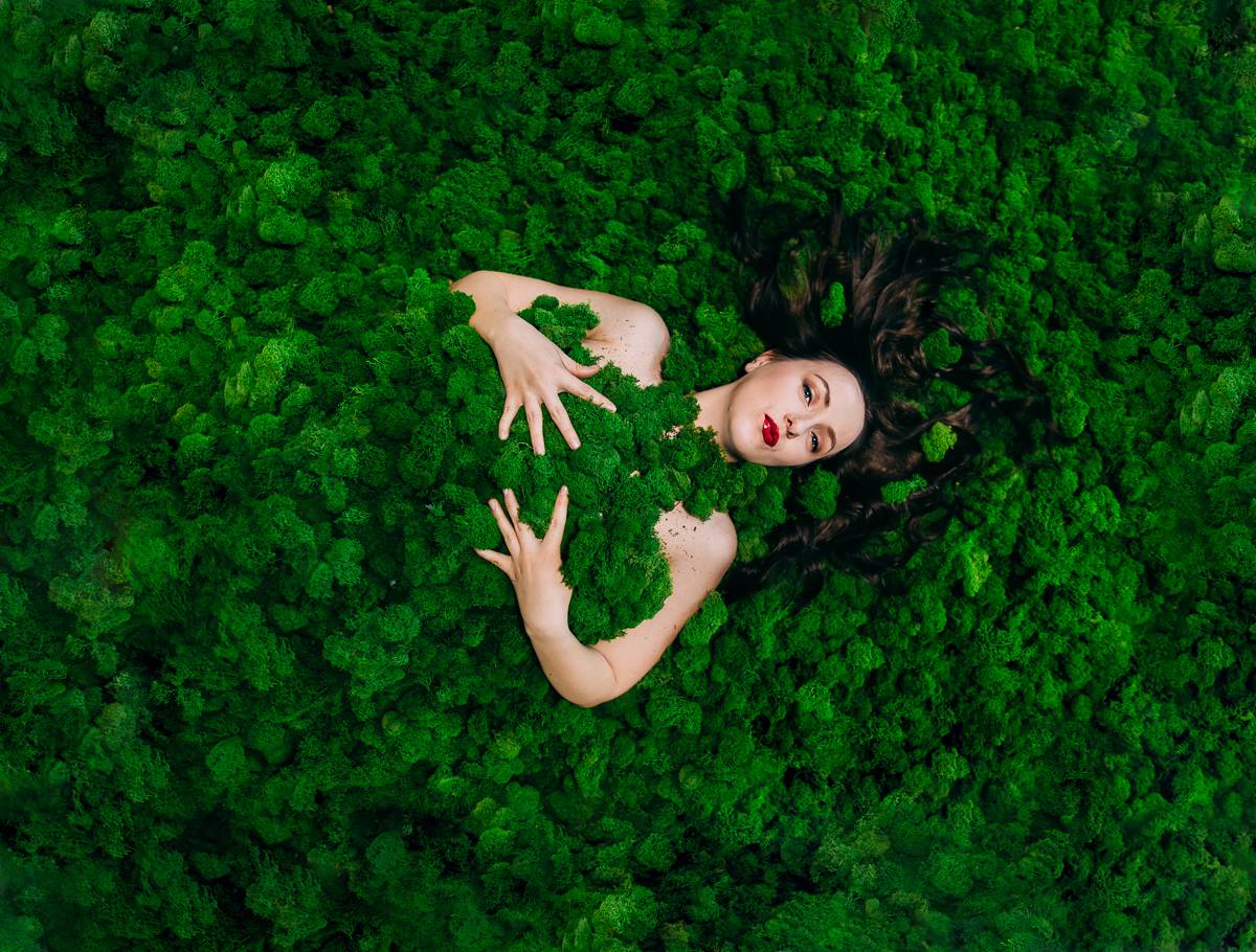 В своих работах мы используем стабилизированный мох, окрашенный пищевыми красителями.