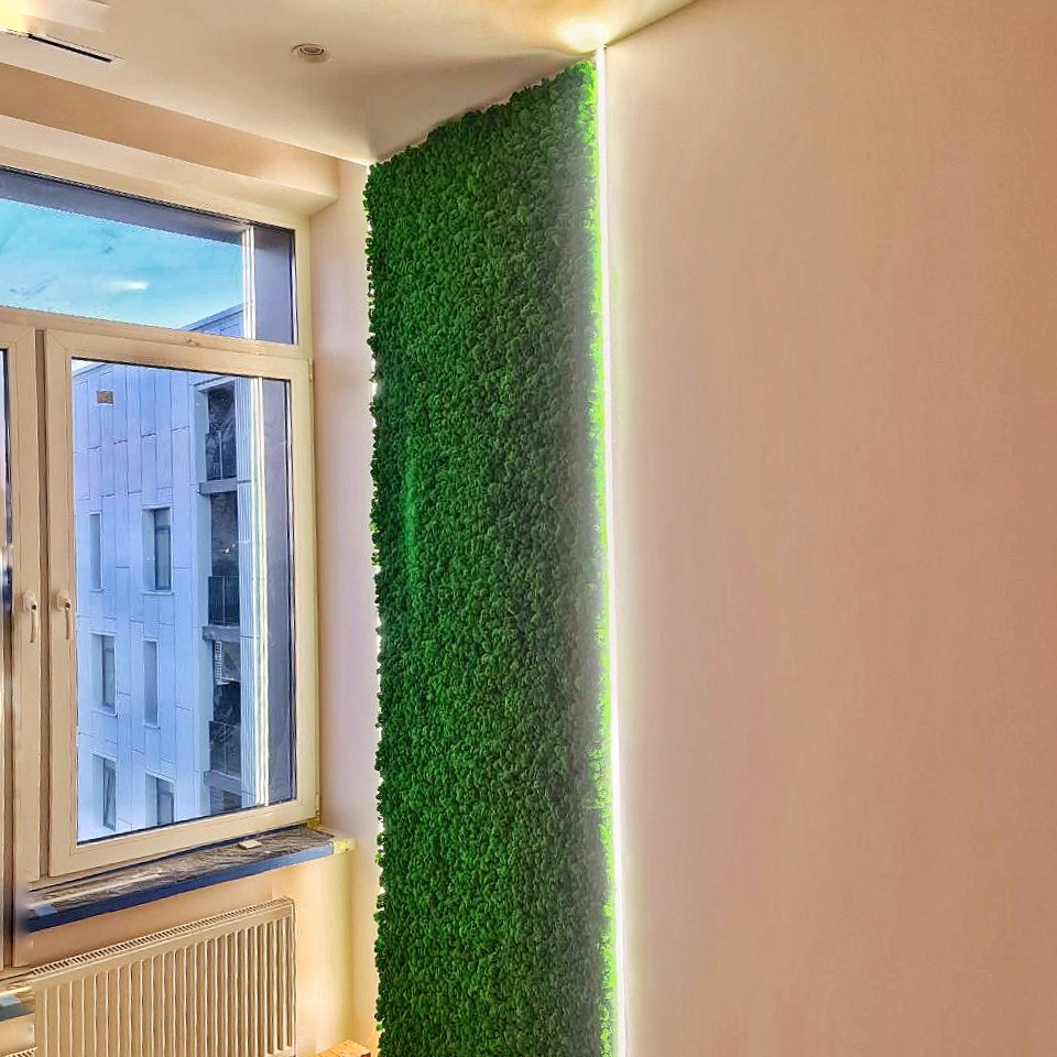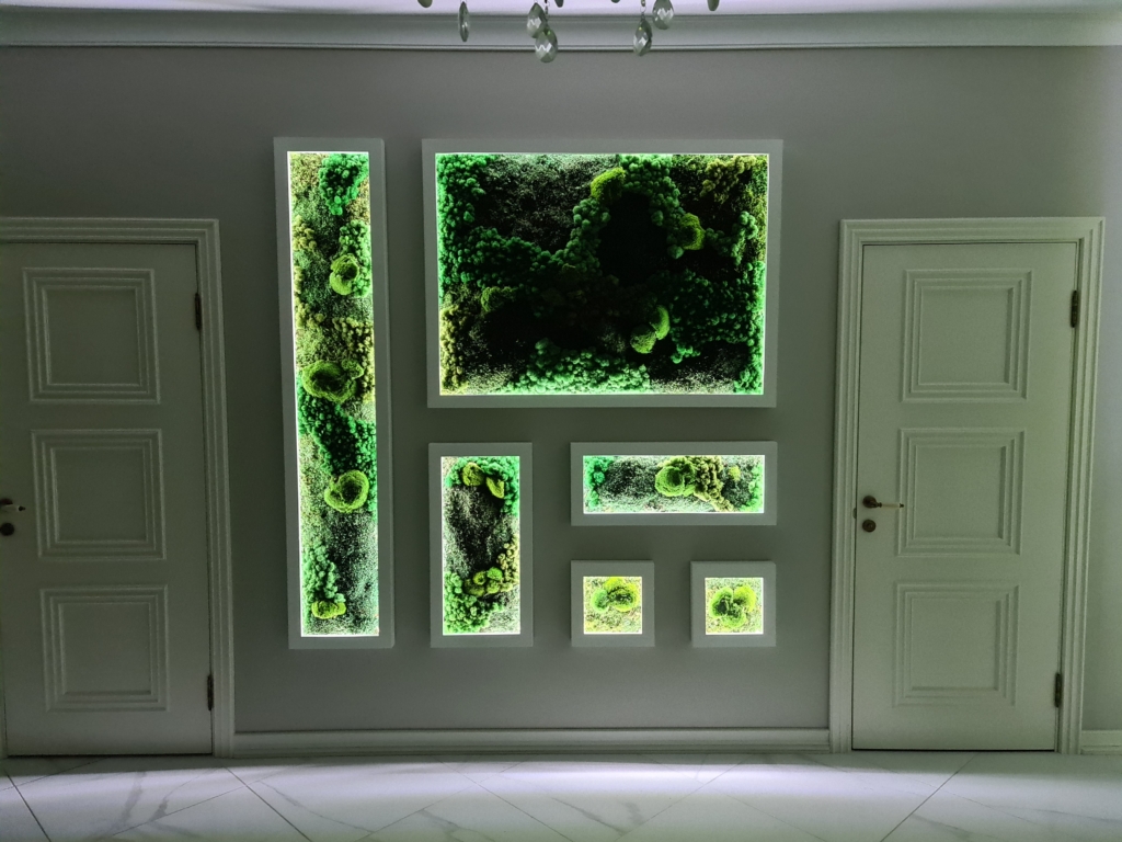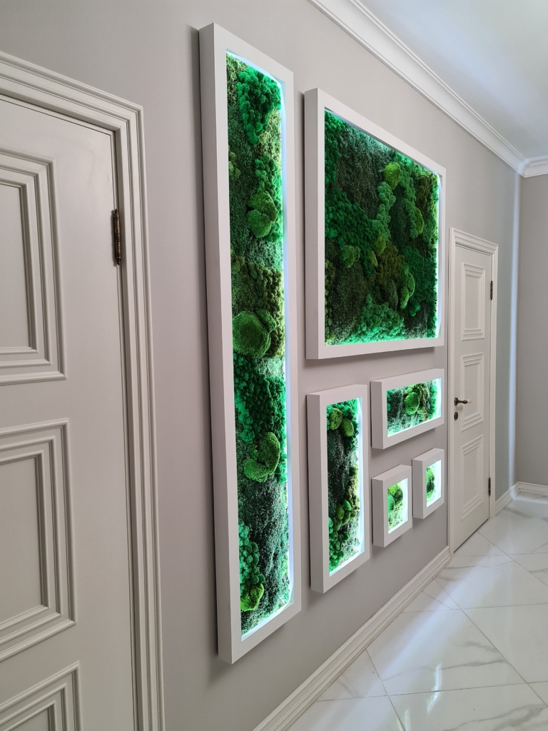 Так же идеальным решением для интерьеров квартир и домов является озеленение из стабилизированного мха.