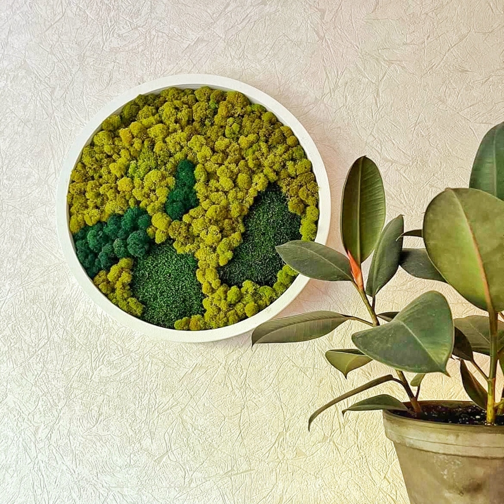 Если вы любите путешествовать или у вас частые командировки и даже кактус засыхает, то стабилизированный мох в интерьере вашего жилья — это идеальный вариант.